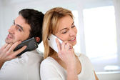 człowiek w domu za pomocą smartphone