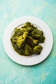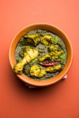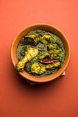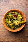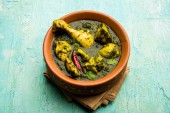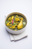 Palak/szpinak kurczak lub Murg Saagwala służył w misce z naan i ryżu