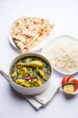 Zdjęcie "Palak/szpinak kurczak lub Murg Saagwala służył w misce z naan i ryżu" może być wykorzystywane do celów osobistych i komercyjnych zgodnie z warunkami zakupionej licencji Royalty-free. Obraz jest dostępny do pobrania w jakości wysokiej rozdzielczości do 5760x3840.