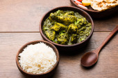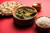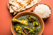 Zdjęcie "Palak/szpinak kurczak lub Murg Saagwala służył w misce z naan i ryżu" może być wykorzystywane do celów osobistych i komercyjnych zgodnie z warunkami zakupionej licencji Royalty-free. Obraz jest dostępny do pobrania w jakości wysokiej rozdzielczości do 5760x3840.