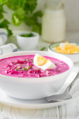 tradycyjny rosyjski barszcz z wołowiny, buraków i kwaśną śmietaną