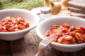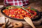 Leczo - gulasz z papryki, cebuli i kiełbaski.