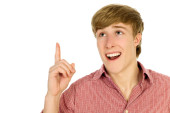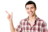 młody człowiek, wskazując