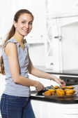 naturalne i uśmiechnięta kobieta ze zdrową żywnością