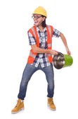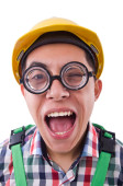 Zdjęcie "Śmieszny budowlaniec odizolowany na biały" może być wykorzystywane do celów osobistych i komercyjnych zgodnie z warunkami zakupionej licencji Royalty-free. Obraz jest dostępny do pobrania w jakości wysokiej rozdzielczości do 5760x3840.