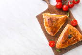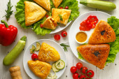 Zdjęcie "Deska ze smacznymi samosas na jasnym stole" może być wykorzystywane do celów osobistych i komercyjnych zgodnie z warunkami zakupionej licencji Royalty-free. Obraz jest dostępny do pobrania w jakości wysokiej rozdzielczości do 5760x3840.