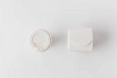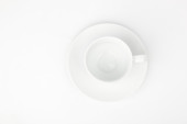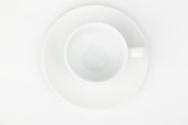 Widok z góry pustego białego kubka na spodu na białym tle