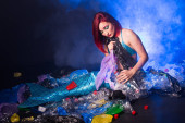 Zdjęcie "Różowowłosy młoda kobieta z kawałkami różowego tańca tkaniny w pobliżu pola z generatorami wiatru. Wiatrak na zachodzie słońca. Portret mody" może być wykorzystywane do celów osobistych i komercyjnych zgodnie z warunkami zakupionej licencji Royalty-free. Obraz jest dostępny do pobrania w jakości wysokiej rozdzielczości do 5760x3840.