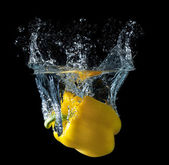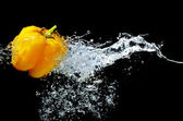 świeży pieprz splash w wodzie na czarnym tle