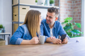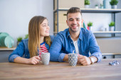 Zdjęcie "Młoda para relaksująca picie filiżanki kawy i za pomocą smartph" może być wykorzystywane do celów osobistych i komercyjnych zgodnie z warunkami zakupionej licencji Royalty-free. Obraz jest dostępny do pobrania w jakości wysokiej rozdzielczości do 5760x3840.