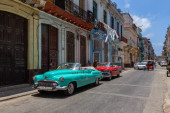 Zdjęcie "Hawana, Kuba-26 maja 2019: Classic Old American Taxi Car na ulicach starej Hawany City podczas tętniącego życiem i jasnego słonecznego ranka." może być wykorzystywane do celów osobistych i komercyjnych zgodnie z warunkami zakupionej licencji Royalty-free. Obraz jest dostępny do pobrania w jakości wysokiej rozdzielczości do 5760x3840.