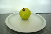 Owoce podawane na tacce i sfotografowane na białej płycie