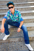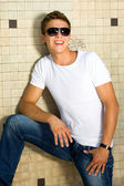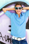 młody człowiek z kciuki