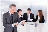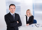 Szczęśliwa młoda bizneswoman