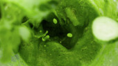 Widok z góry na dół-prosta łyżka w zupie śmietany szpinaku, zbliżenie z małym bańki widoczne na zielonej powierzchni, koncepcja zdrowej żywności