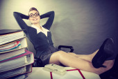 Kobieta interesu przestój w pracy relaksujący nogi wiele doc