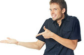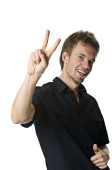 Zdjęcie "młody człowiek przedstawiający znak na białym tle" może być wykorzystywane do celów osobistych i komercyjnych zgodnie z warunkami zakupionej licencji Royalty-free. Obraz jest dostępny do pobrania w jakości wysokiej rozdzielczości do 5760x3840.