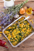 Zdjęcie "Szpinak tłum makaronu zapiekane" może być wykorzystywane do celów osobistych i komercyjnych zgodnie z warunkami zakupionej licencji Royalty-free. Obraz jest dostępny do pobrania w jakości wysokiej rozdzielczości do 5760x3840.