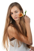 Zdjęcie "młoda kobieta z kwiatem" może być wykorzystywane do celów osobistych i komercyjnych zgodnie z warunkami zakupionej licencji Royalty-free. Obraz jest dostępny do pobrania w jakości wysokiej rozdzielczości do 5760x3840.