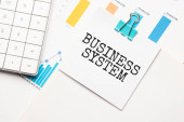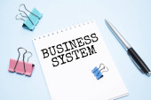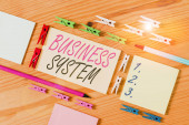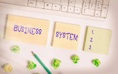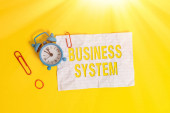 Koncepcyjny pisanie ręczne pokazujące system biznesowy. Biznesowy tekst fotograficzny Metoda analizowania informacji organizacji Kalkulator myszy arkusze znacznik schowka zegar kolor tła.