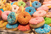 Zdjęcie "Pączki z kolorowym tłem dekoracji. Widok zbliżenie" może być wykorzystywane do celów osobistych i komercyjnych zgodnie z warunkami zakupionej licencji Royalty-free. Obraz jest dostępny do pobrania w jakości wysokiej rozdzielczości do 5760x3840.