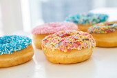 Zdjęcie "Doughnuts różne na białym. Widok z bliska" może być wykorzystywane do celów osobistych i komercyjnych zgodnie z warunkami zakupionej licencji Royalty-free. Obraz jest dostępny do pobrania w jakości wysokiej rozdzielczości do 5760x3840.