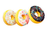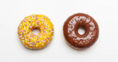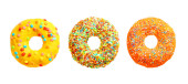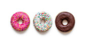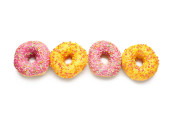 Pączki z kolorową dekoracją na białym tle koloru. Widok z góry