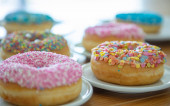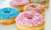 Doughnuts różne na białym. Widok z bliska
