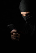 Zdjęcie "Młody dorosły dziewczyna w czarny odzież z ukryty twarz protesty podnoszenie pięść na czarne tło z kopia Space." może być wykorzystywane do celów osobistych i komercyjnych zgodnie z warunkami zakupionej licencji Royalty-free. Obraz jest dostępny do pobrania w jakości wysokiej rozdzielczości do 5760x3840.