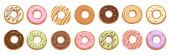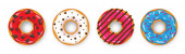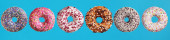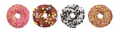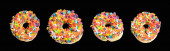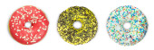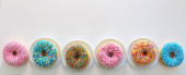 Pączki z kolorową dekoracją wyizolowaną białym kolorem tła. Widok z góry