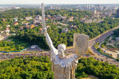 Widok lotniczy Kijów wieża telewizyjna w środku parku