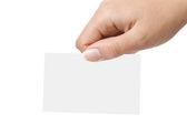 ręcznie trzymać wirtualną wizytówkę lub pusty papier na białym tle