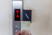 kontroli dostępu do windy lub windy. Kontrola dostępu do windy, ręcznie trzymając kartę klucza, aby odblokować podłogę windy przed w górę lub w dół.