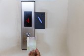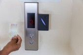 Zdjęcie "kontroli dostępu do windy lub windy. Kontrola dostępu do windy, ręcznie trzymając kartę klucza, aby odblokować podłogę windy przed w górę lub w dół. " może być wykorzystywane do celów osobistych i komercyjnych zgodnie z warunkami zakupionej licencji Royalty-free. Obraz jest dostępny do pobrania w jakości wysokiej rozdzielczości do 5760x3840.