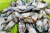 Zdjęcie "Świeże kraby na rynku owoców morza. stawonogi Phylum. koncepcji szkieletu i pazurów. Świeży krab morski, które są związane i przygotować się do sprzedaży na świeżym rynku. Fresh Crabs krawat z liny. żywności morskiej. Na rynku tajskim." może być wykorzystywane do celów osobistych i komercyjnych zgodnie z warunkami zakupionej licencji Royalty-free. Obraz jest dostępny do pobrania w jakości wysokiej rozdzielczości do 5760x3840.