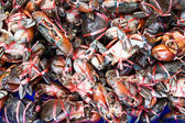 Świeże kraby na rynku owoców morza. stawonogi Phylum. koncepcji szkieletu i pazurów. Świeży krab morski, które są związane i przygotować się do sprzedaży na świeżym rynku. Fresh Crabs krawat z liny. żywności morskiej. Na rynku tajskim.
