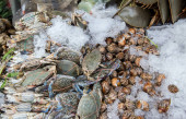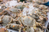 Zdjęcie "Świeże kraby na rynku owoców morza. stawonogi Phylum. koncepcji szkieletu i pazurów. Świeży krab morski, które są związane i przygotować się do sprzedaży na świeżym rynku. Fresh Crabs krawat z liny. żywności morskiej. Na rynku tajskim." może być wykorzystywane do celów osobistych i komercyjnych zgodnie z warunkami zakupionej licencji Royalty-free. Obraz jest dostępny do pobrania w jakości wysokiej rozdzielczości do 5760x3840.
