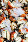 Zdjęcie "Świeże kraby na rynku owoców morza. stawonogi Phylum. koncepcji szkieletu i pazurów. Świeży krab morski, które są związane i przygotować się do sprzedaży na świeżym rynku. Fresh Crabs krawat z liny. żywności morskiej. Na rynku tajskim." może być wykorzystywane do celów osobistych i komercyjnych zgodnie z warunkami zakupionej licencji Royalty-free. Obraz jest dostępny do pobrania w jakości wysokiej rozdzielczości do 5760x3840.