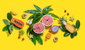 Tęcza różnych egzotycznych owoców tropikalnych linii żółty