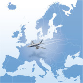 Loty do Unii Europejskiej, koncepcja podróży. Renderowanie 3D