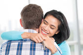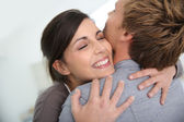 młoda kobieta zamknąć oczy i ogarnięcie jej chłopaka