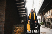 Zdjęcie "Rudowłosy wspaniały hipster młoda kobieta w Vintage kurtka w t-shirt z okularami w t-shirt z wzorem stoi w nowoczesnym sklepie. Modne całkiem atrakcyjne dziewczyny model spacery w sklepie." może być wykorzystywane do celów osobistych i komercyjnych zgodnie z warunkami zakupionej licencji Royalty-free. Obraz jest dostępny do pobrania w jakości wysokiej rozdzielczości do 5760x3840.