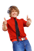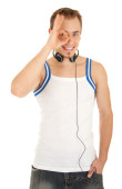 młody człowiek, wskazując