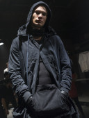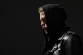 selektywne skupienie przystojnego złodzieja w czarnej bluzie w tunel