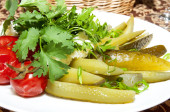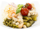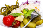 marynowane warzywa, ogórek pomidory szparagi i czosnek kapusta