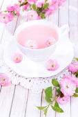 czajnik filiżanka herbaty z herbaty na metalowe taca na Obrus