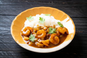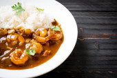 Krewetki w sosie curry na ryżu