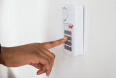 Ręka za pomocą skanowania, aby otworzyć drzwi do wejścia p domu i budynku dla systemu bezpieczeństwa
