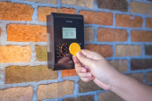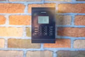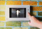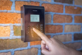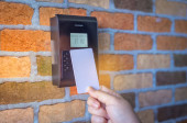 Zdjęcie "Ręka za pomocą skanowania, aby otworzyć drzwi do wejścia p domu i budynku dla systemu bezpieczeństwa" może być wykorzystywane do celów osobistych i komercyjnych zgodnie z warunkami zakupionej licencji Royalty-free. Obraz jest dostępny do pobrania w jakości wysokiej rozdzielczości do 5760x3840.