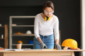 Zdjęcie "Portret kobiecego stolarza w warsztacie" może być wykorzystywane do celów osobistych i komercyjnych zgodnie z warunkami zakupionej licencji Royalty-free. Obraz jest dostępny do pobrania w jakości wysokiej rozdzielczości do 5760x3840.